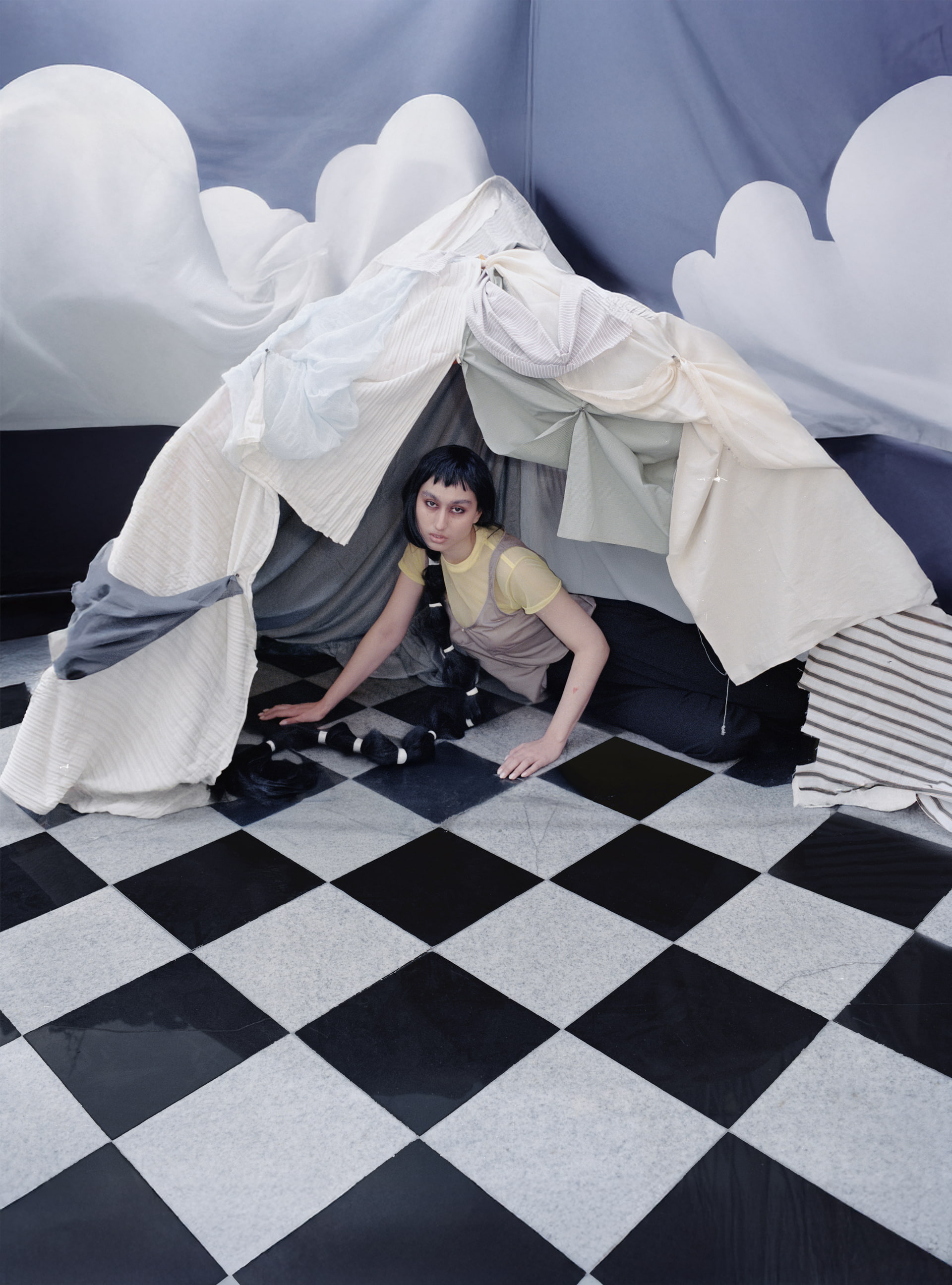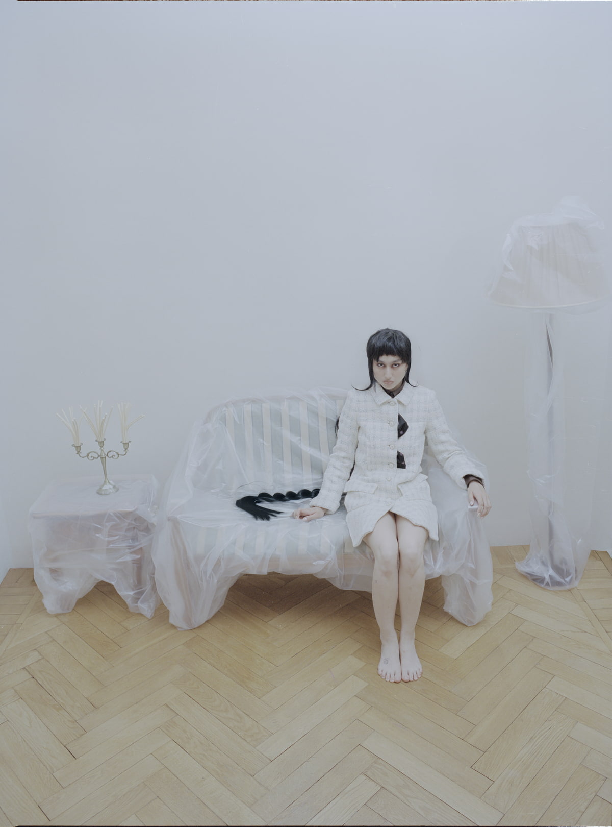 A still-life of fatigue and quiet sorrow. The main character hides her potential and longing beneath a bed-rotting lifestyle. Rapunzel wasnever just a girl in a tower — her hair, long and tangled, holds the quiet memory of everything she’s endured. Untouched for too long,it speaks of exhaustion, abandonment, and the slow fading of self. Sleep becomes a portal not to rest, but to other worlds — blurry,weightless, and strangely warm. She’s disappearing, but memory stays — stitched to her skin, sewn into seams, hidden in folds of hernightgown.
