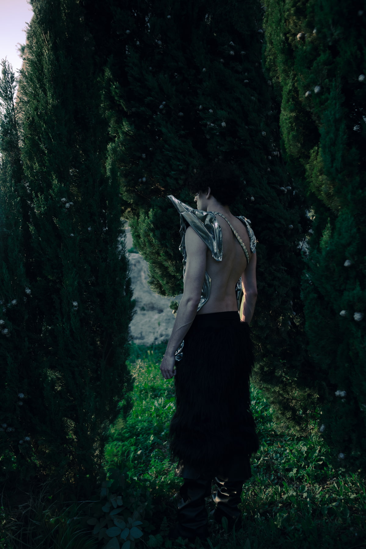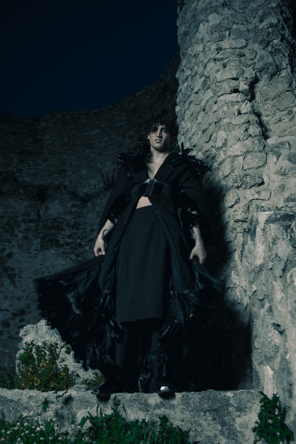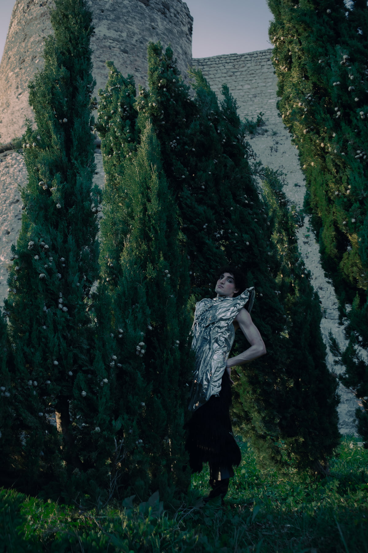 This photographic shoot explores a return to a dark, gothic past as a space of listening and introspection. In contrast to an artificial, colorful, and plastic present, the images evoke a quieter, more primordial dimension, where the body confronts solitude, memory, and its own roots.